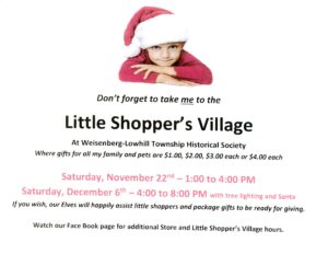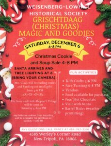Check back often for additional events and information. Don’t forget to “Like” and ” Follow” us on our Face Book page, Weisenberg Lowhill Township Historical Society.