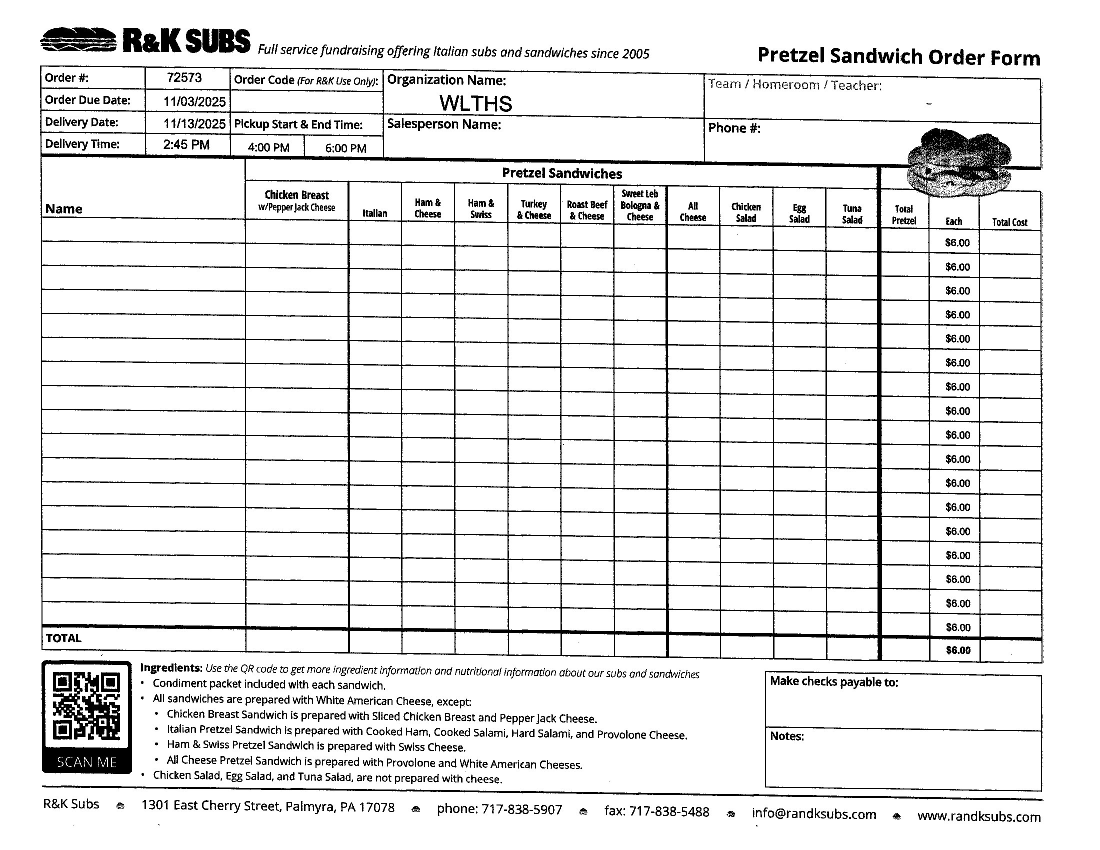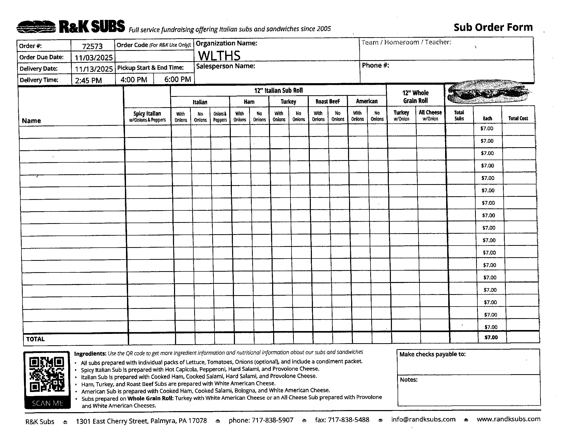 Our Hoagie Fundraiser is November 13. Orders are due by November 3. Call Nancy at 484-767-2307.